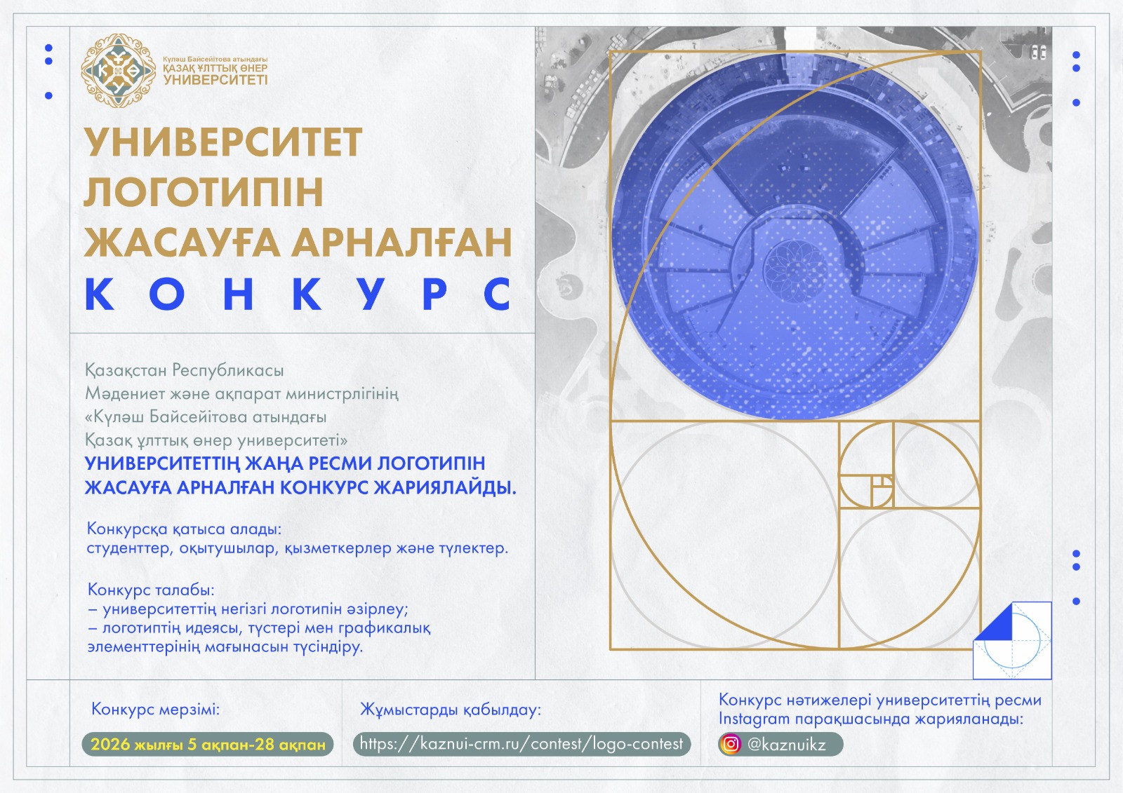 Барлық сайт қонақтарын Күләш Байсейітова атындағы Қазақ ұлттық өнер университеті, оның тарихы мен жетістіктері, сондай-ақ біз ұсынатын оқу мүмкіндіктері туралы көбірек білуге шақырамыз.