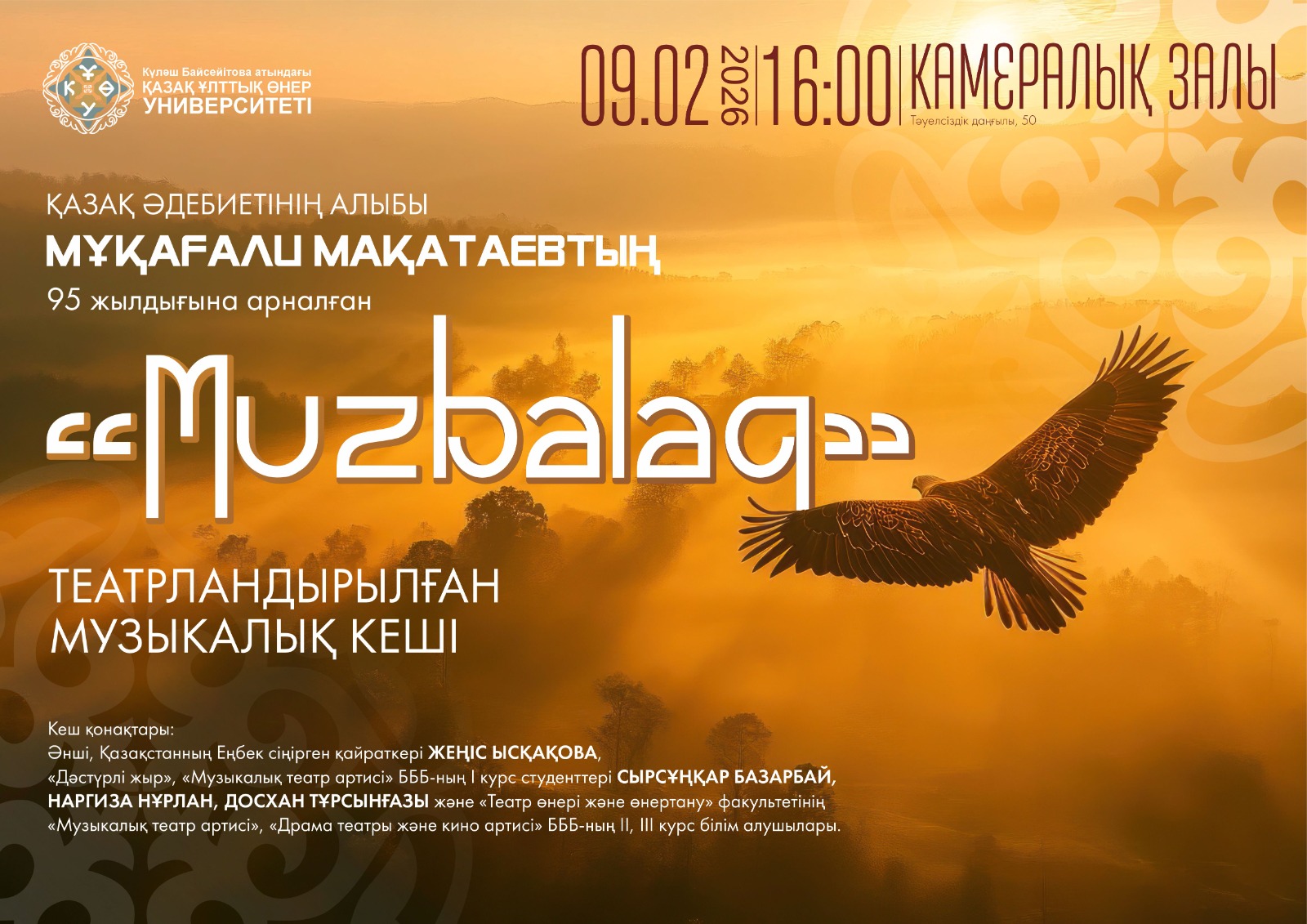 Біздің университет – Қазақстандағы музыка, театр, кинематография, бейнелеу өнері, дизайн, өнер теориясы, арт-менеджмент және басқа да бағыттар бойынша жоғары білікті мамандар даярлайтын жетекші оқу орындарының бірі.