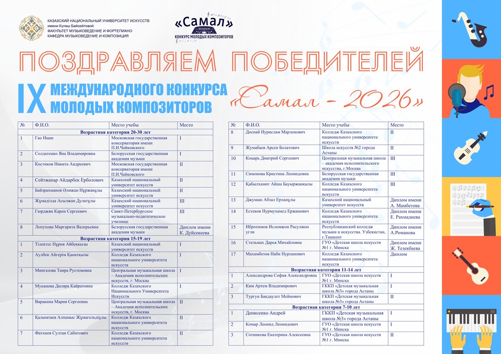 Студенттеріміздің қоғамдық белсенділігіне, жарқын студенттік өміріне, музыкалық шығармашылығына, концерттік және гастрольдік іс-шараларына, сондай-ақ түлектеріміздің жетістіктеріне біз зор мақтанышпен қараймыз.