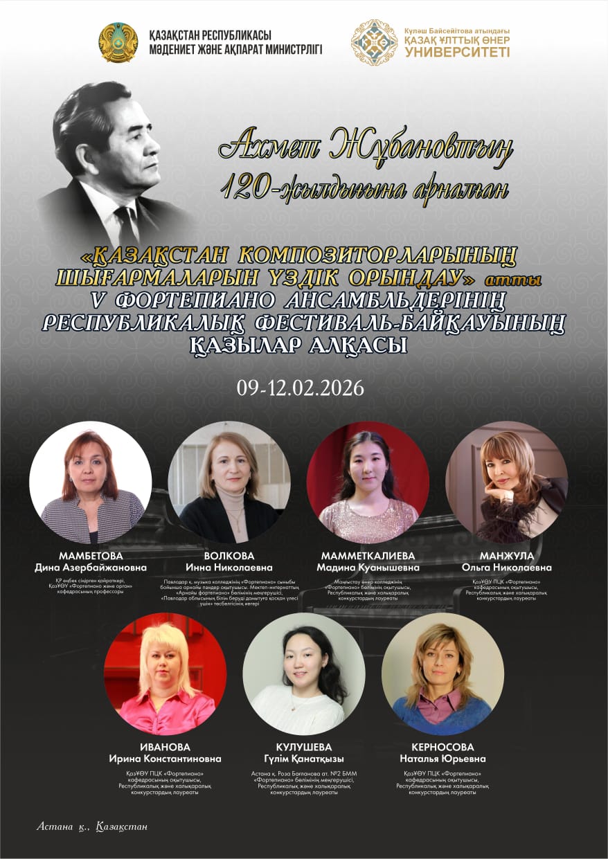 Ахмет Жұбановтың 120 – жылдығына арналған V Республикалық фортепианолық ансамбльдер фестиваль-байқауы «Қазақстан композиторларының шығармаларын үздік орындау»