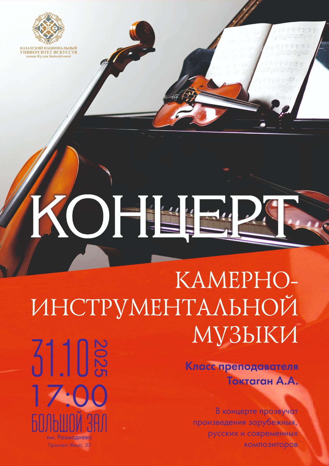 2025 жылдың 15 сәуір күні “Абай” залында “Эстрада өнері” кафедрасының ұйымдастыруымен «6B02181 – Эстрада өнері: эстрада оркестрінің әртісі» білім беру бағдарламасы бойынша XVIII Жоғары оқу орындары студенттерінің Республикалық пәндік олимпиадасы өтті.