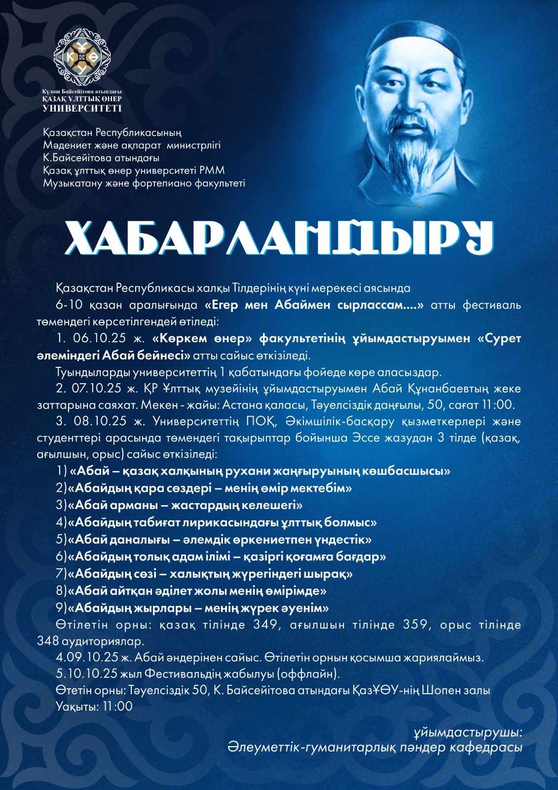 2025 жылдың 17-18 сәуір күні К.Байсейітова атындағы Қазақ ұлттық өнер университетінде «Музыкатану» мамандығы бойынша студенттердің XVII Республикалық пәндік олимпиадасы өтті.
