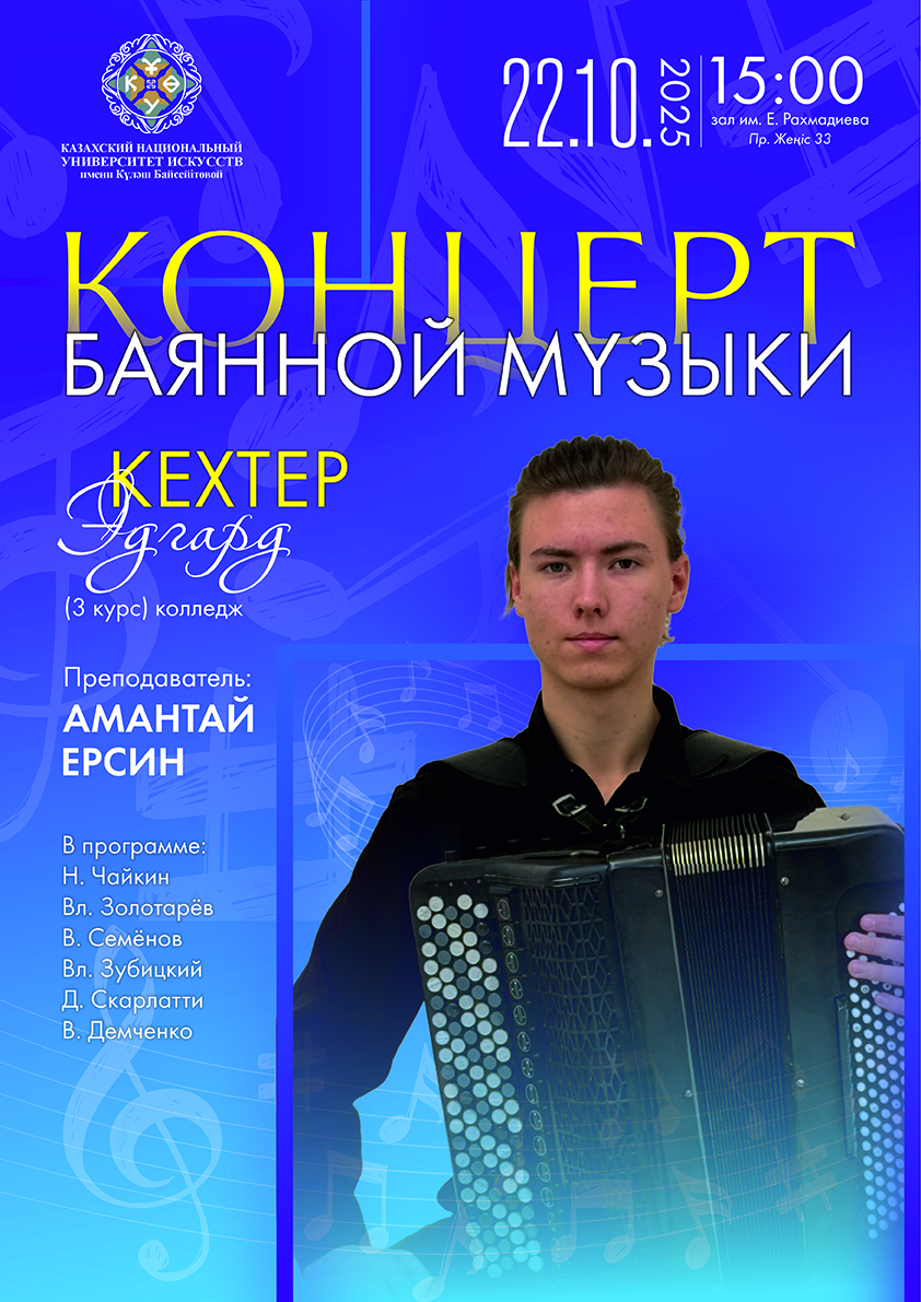 - 3-орын – Балмағамбетова Амина (Құрманғазы атындағы ҚҰК, 3-курс студенті; ғылыми жетекшісі – өнертану кандидаты, доцент И.К. Қожабеков).