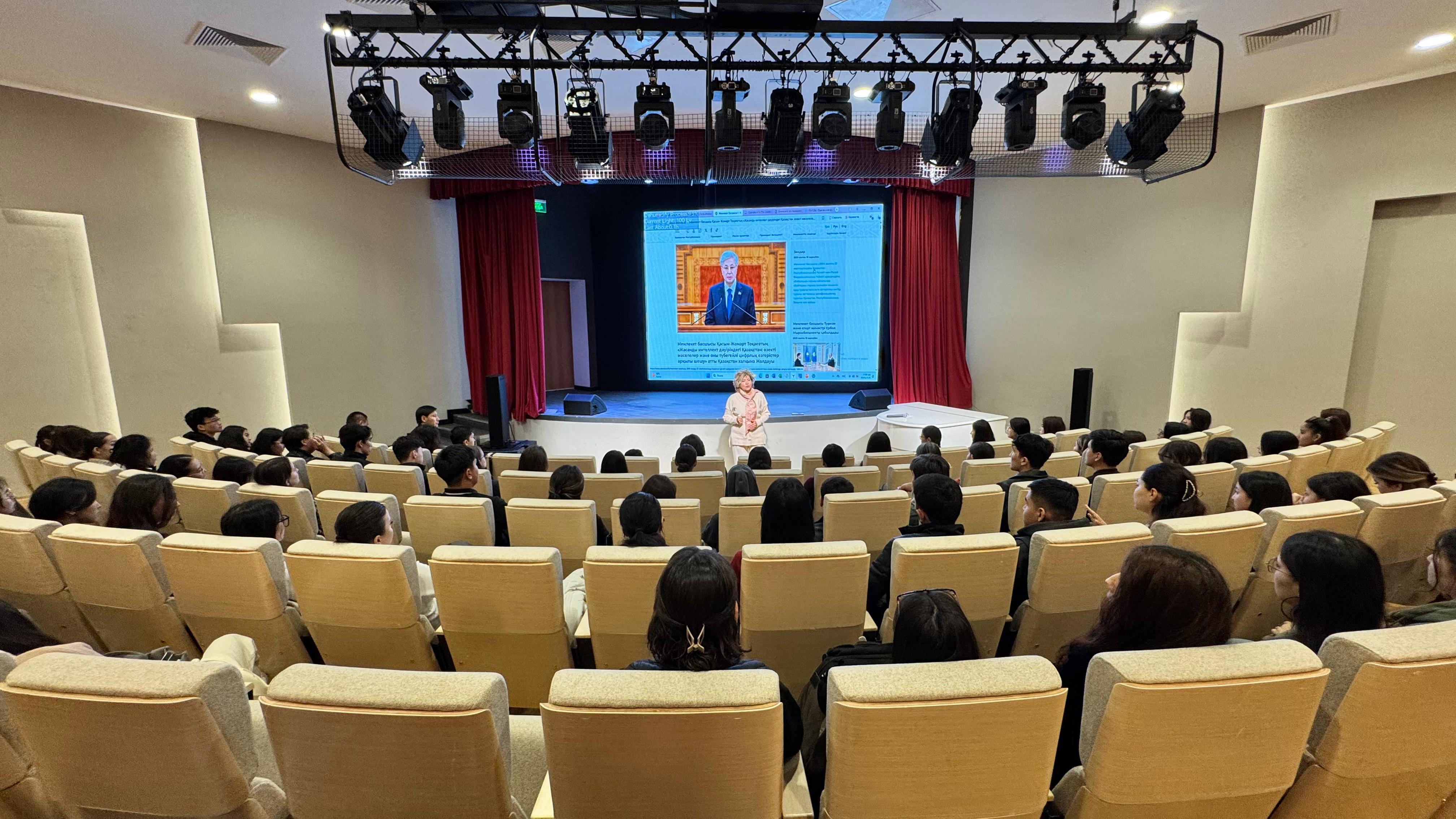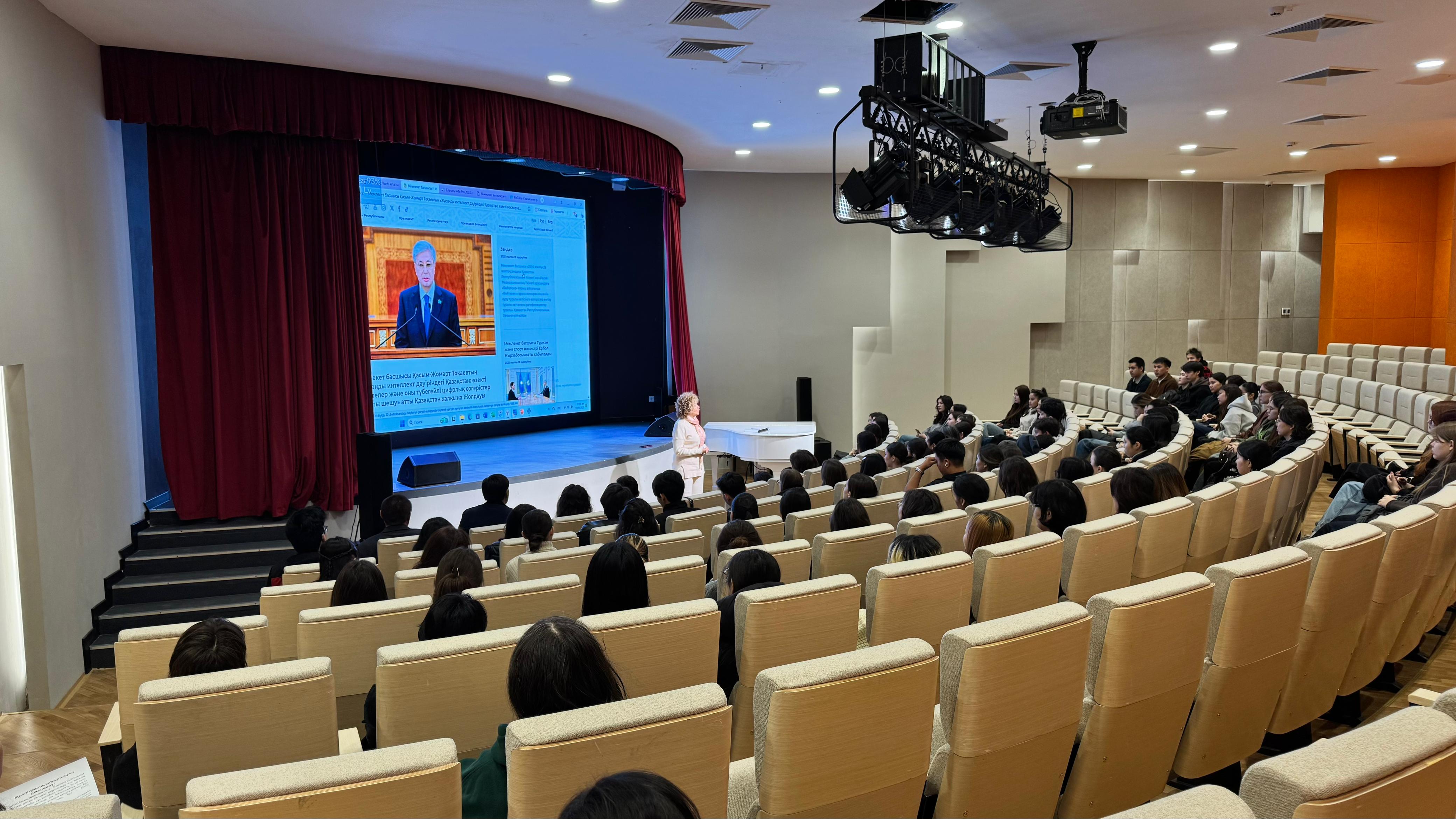 Іс-шараның басты мақсаты – Жолдауда айтылған негізгі басымдықтар мен стратегиялық бағыттарды түсіндіру, сондай-ақ жаңа цифрлық дәуірде Қазақстанның даму жолдарын студент жастармен бірге саралау болды.