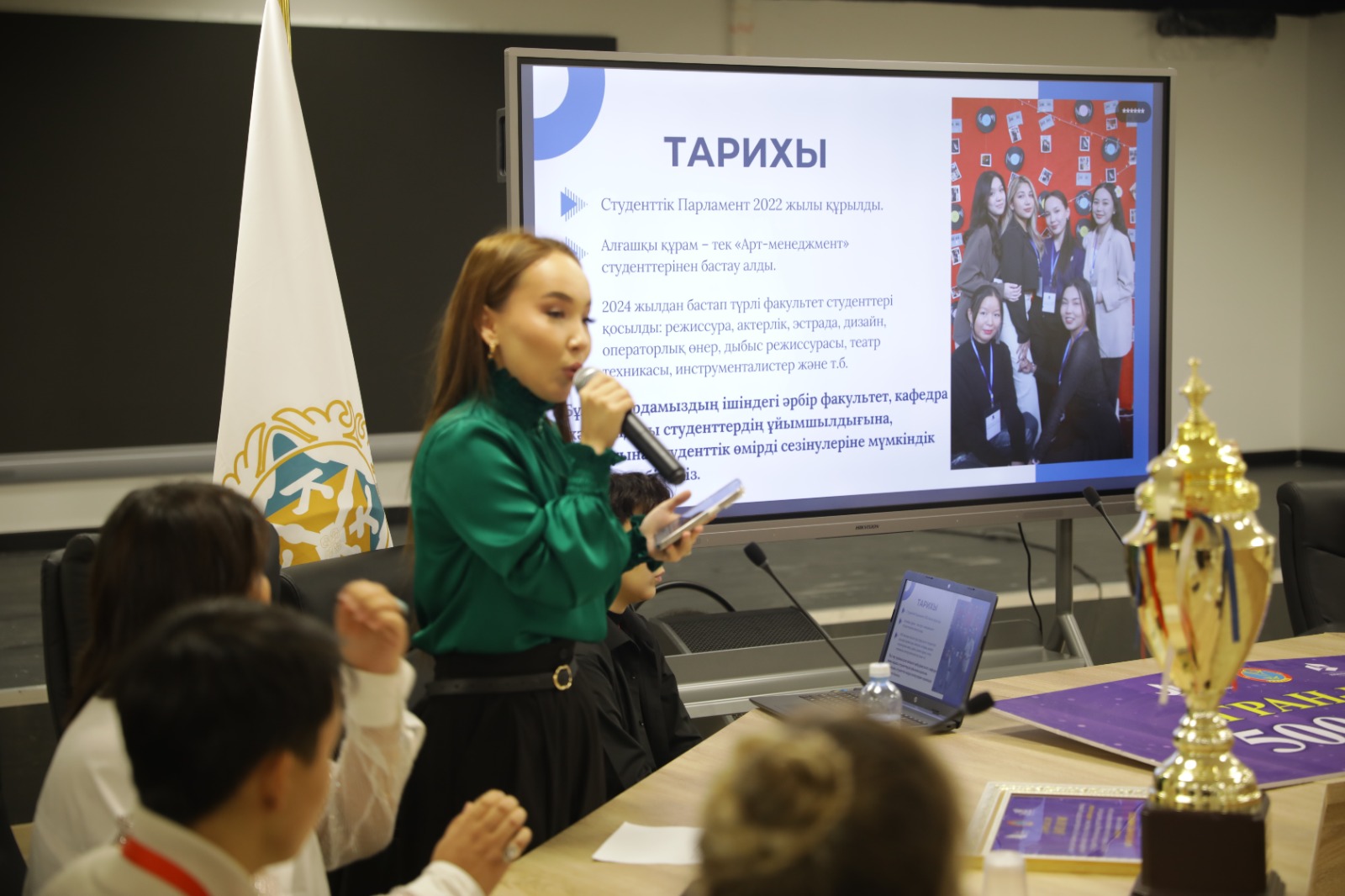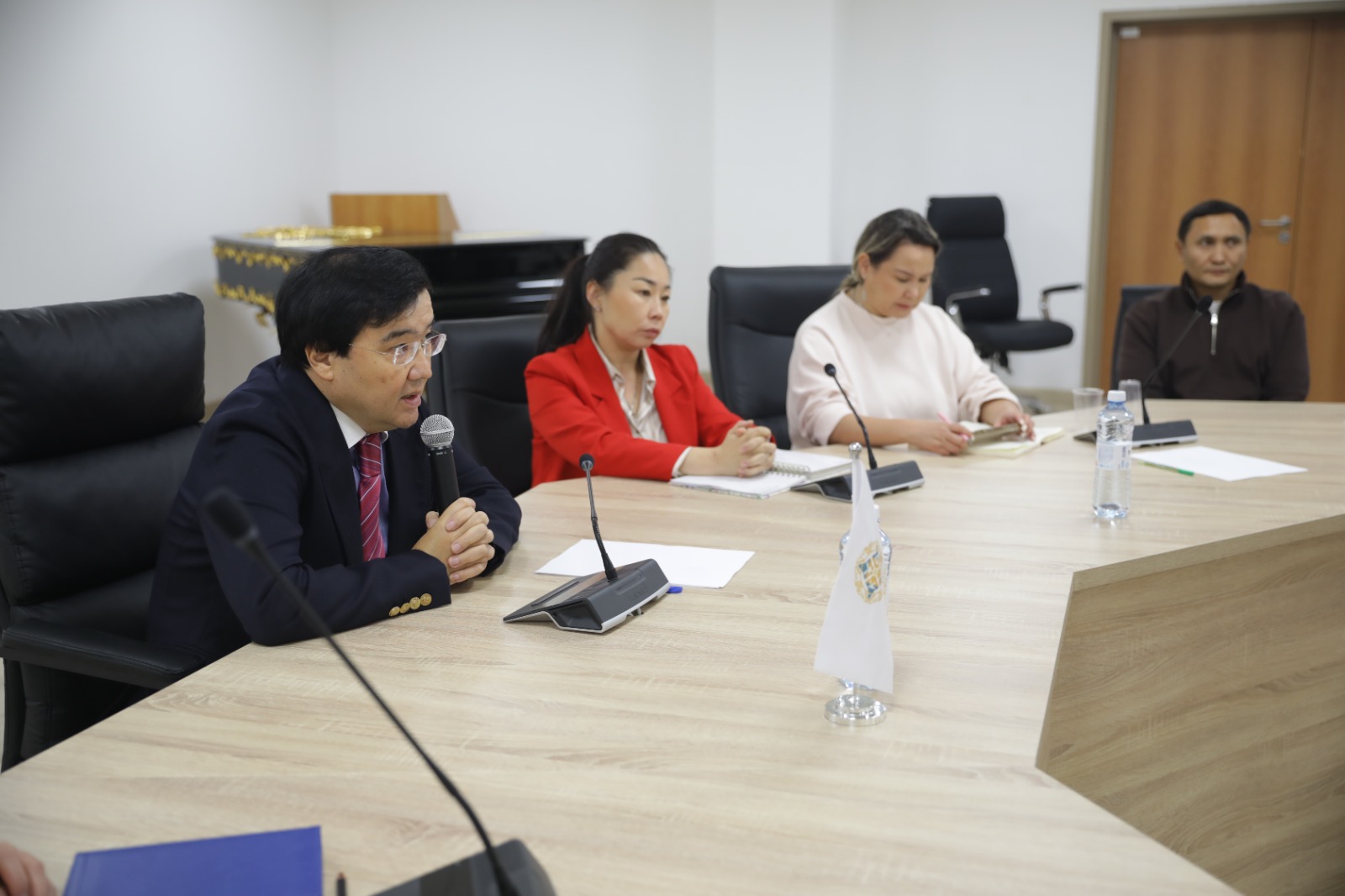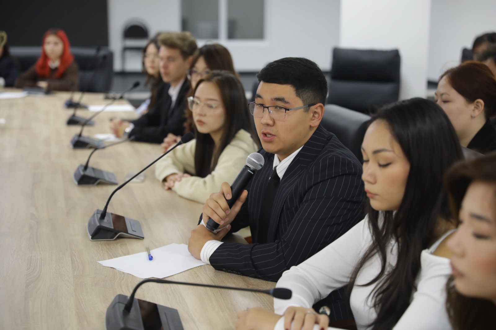 Кездесу «сұрақ-жауап» форматында өтіп, оқу процесі, жаңа ғимаратты пайдалану ережелері мен жатақханадағы тұрмыс жағдайлары талқыланды.