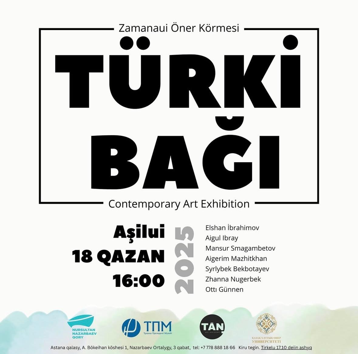 Tan Art Residency, Нұрсұлтан Назарбаев Қоры, Тұңғыш Президент Музейі және Қазақ ұлттық өнер университетінің қолдауымен өтетін «Türki Bagi» заманауи өнер көрмесіне шақырады.