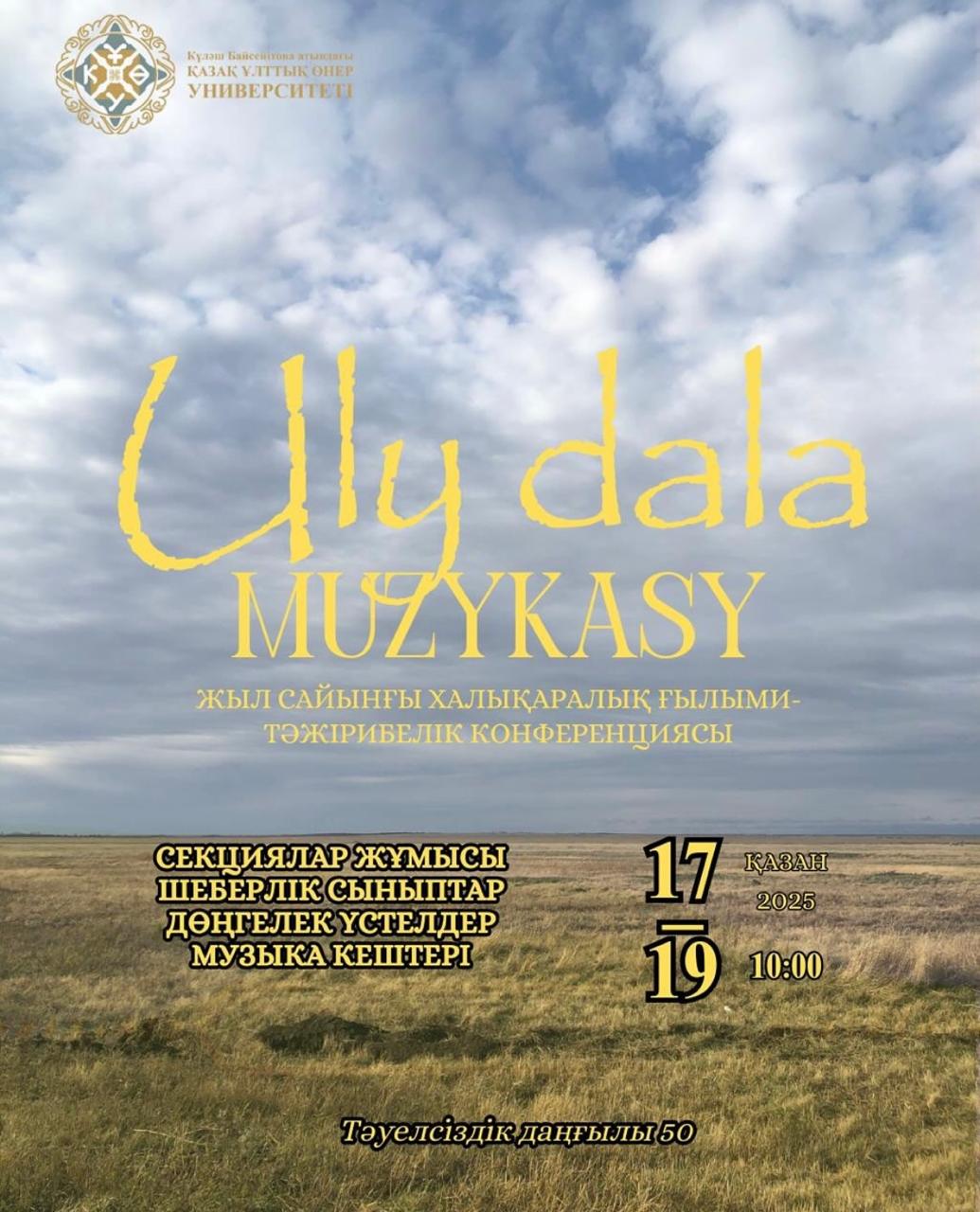 К. Байсейітова атындағы Қазақ ұлттық өнер университеті мен Р. Бағланова атындағы «Қазақконцерт» мемлекеттік концерттік ұйымыСіздерді «Ұлы дала музыкасы» атты жыл сайынғы халықаралық ғылыми-тәжірибелік конференцияға қатысуға шақырады!