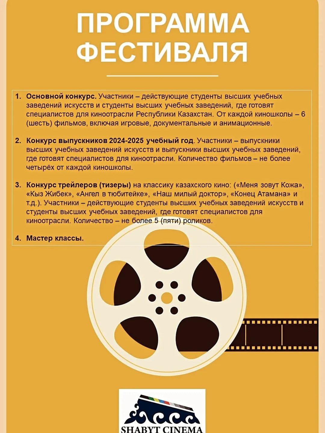 «SHABYT CINEMA» – СТУДЕНТТІК ҚЫСҚАМЕТРАЖДЫ ФИЛЬМДЕР ФЕСТИВАЛІ