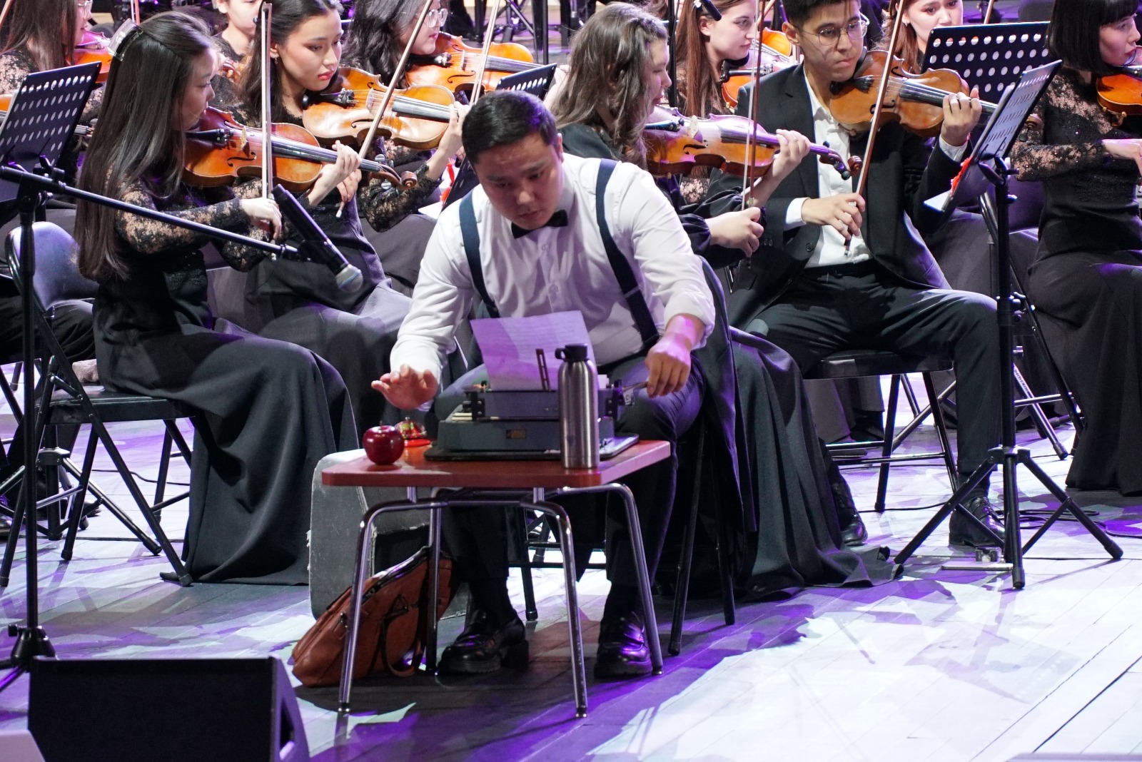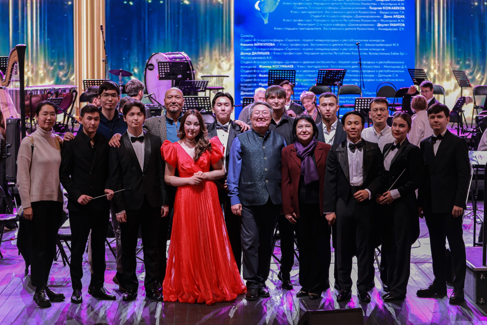 Концертке Күләш Байсейітова атындағы студенттік симфониялық оркестр мен университеттің түрлі кафедраларының солистері қатысты.