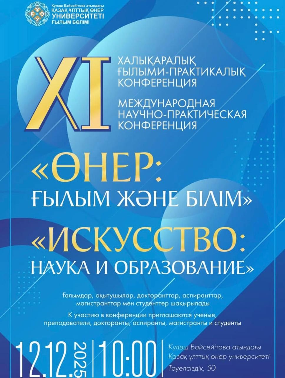 Құрметті әріптестер, сіздерді «Өнер: ғылым және білім» атты XI халықаралық конференцияға қатысуға шақырамыз.